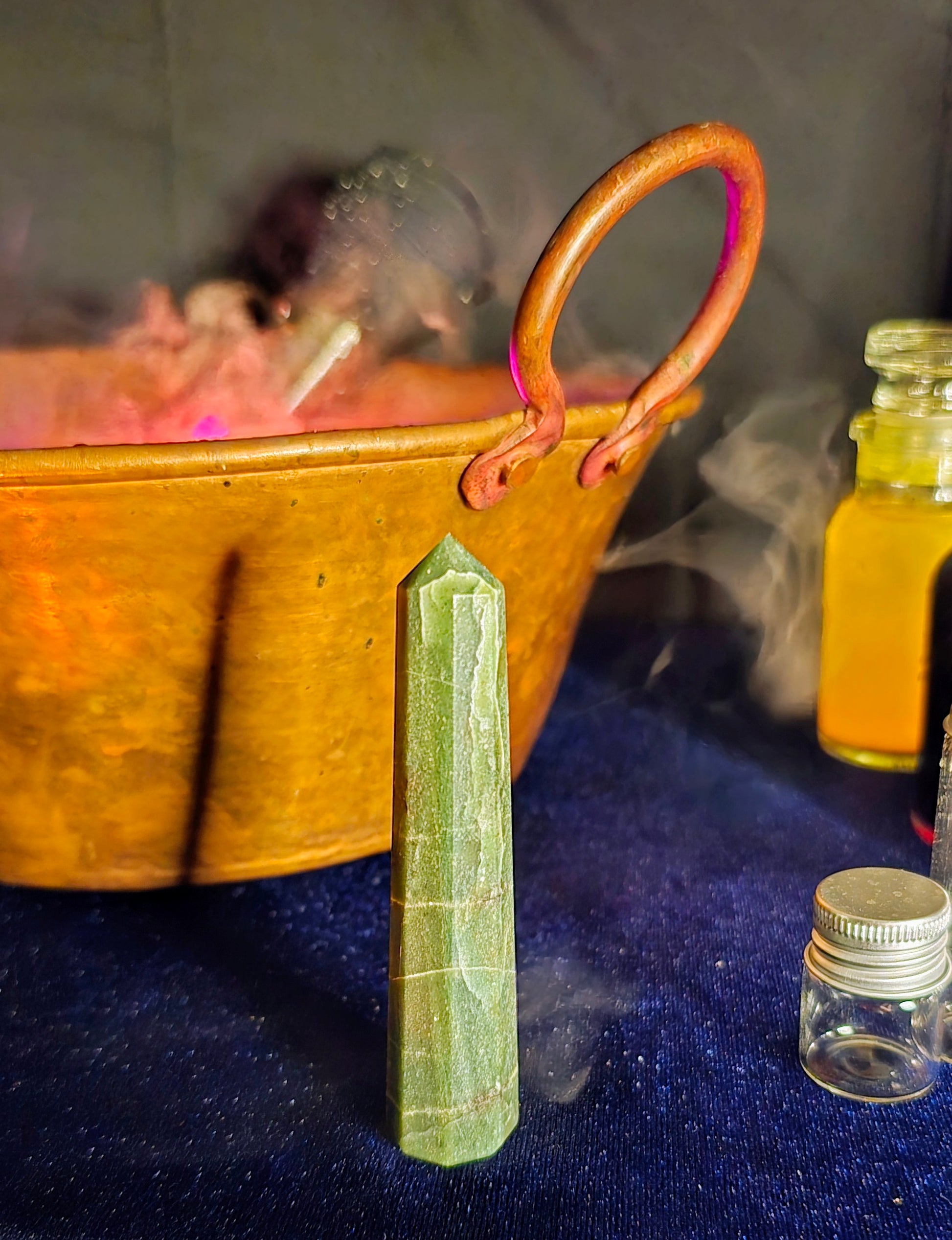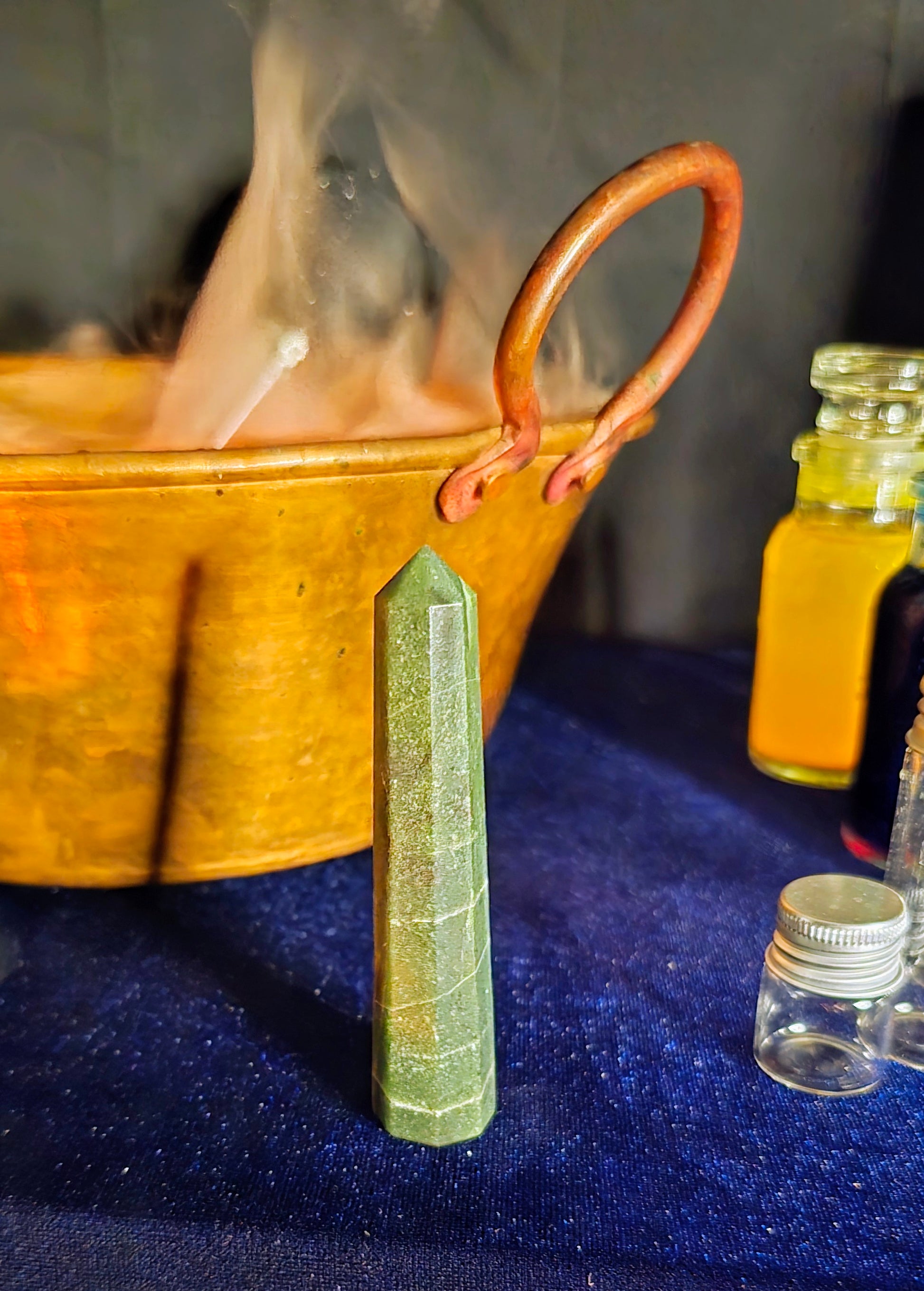 A harmonious union of earthy greens and gentle textures, this Bowenite obelisk radiates a nurturing energy that resonates with love and friendship.