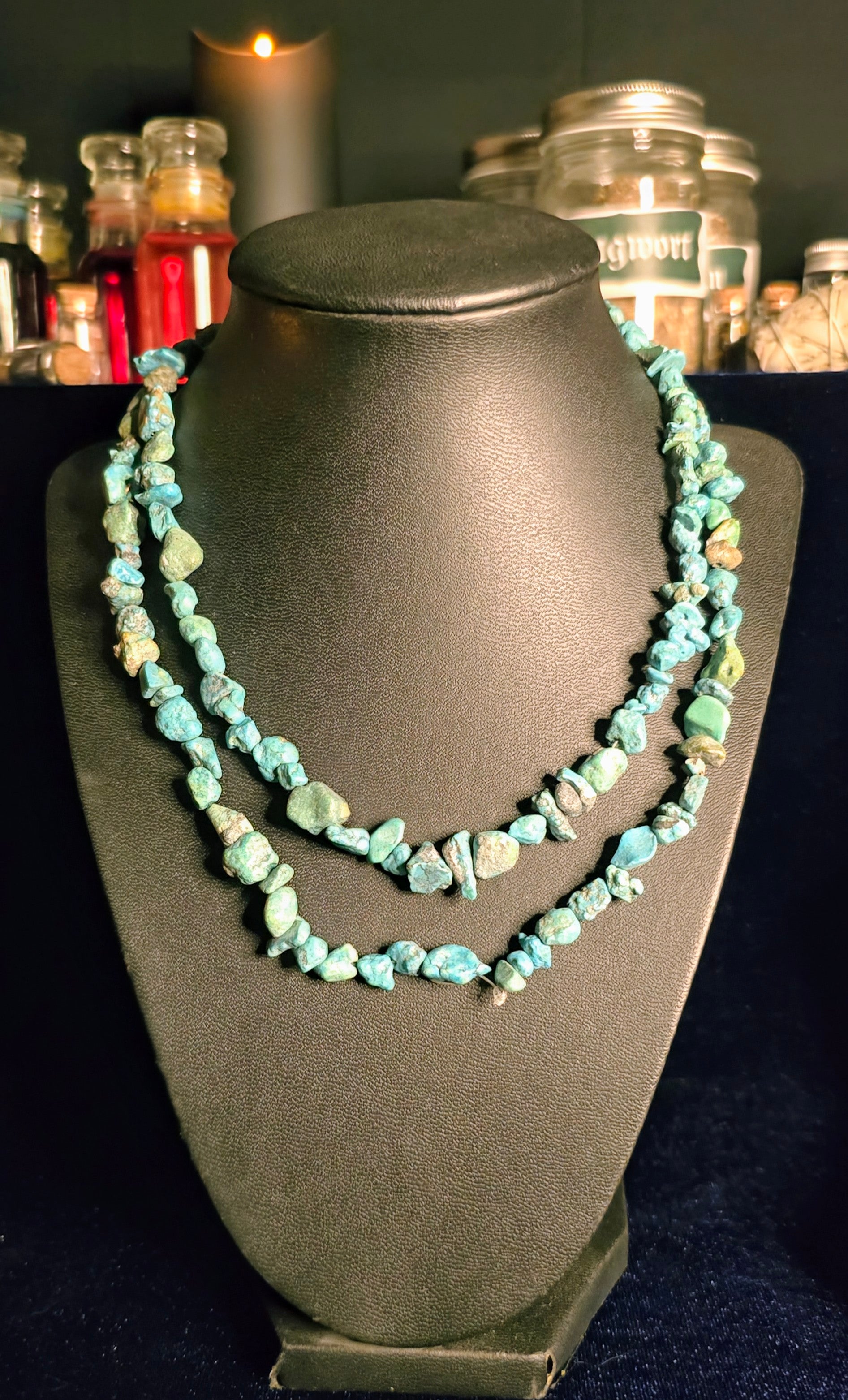 This listing is for one turquoise chip necklace. Approx. 18-inch silver-plated chain; chip sizes naturally vary.