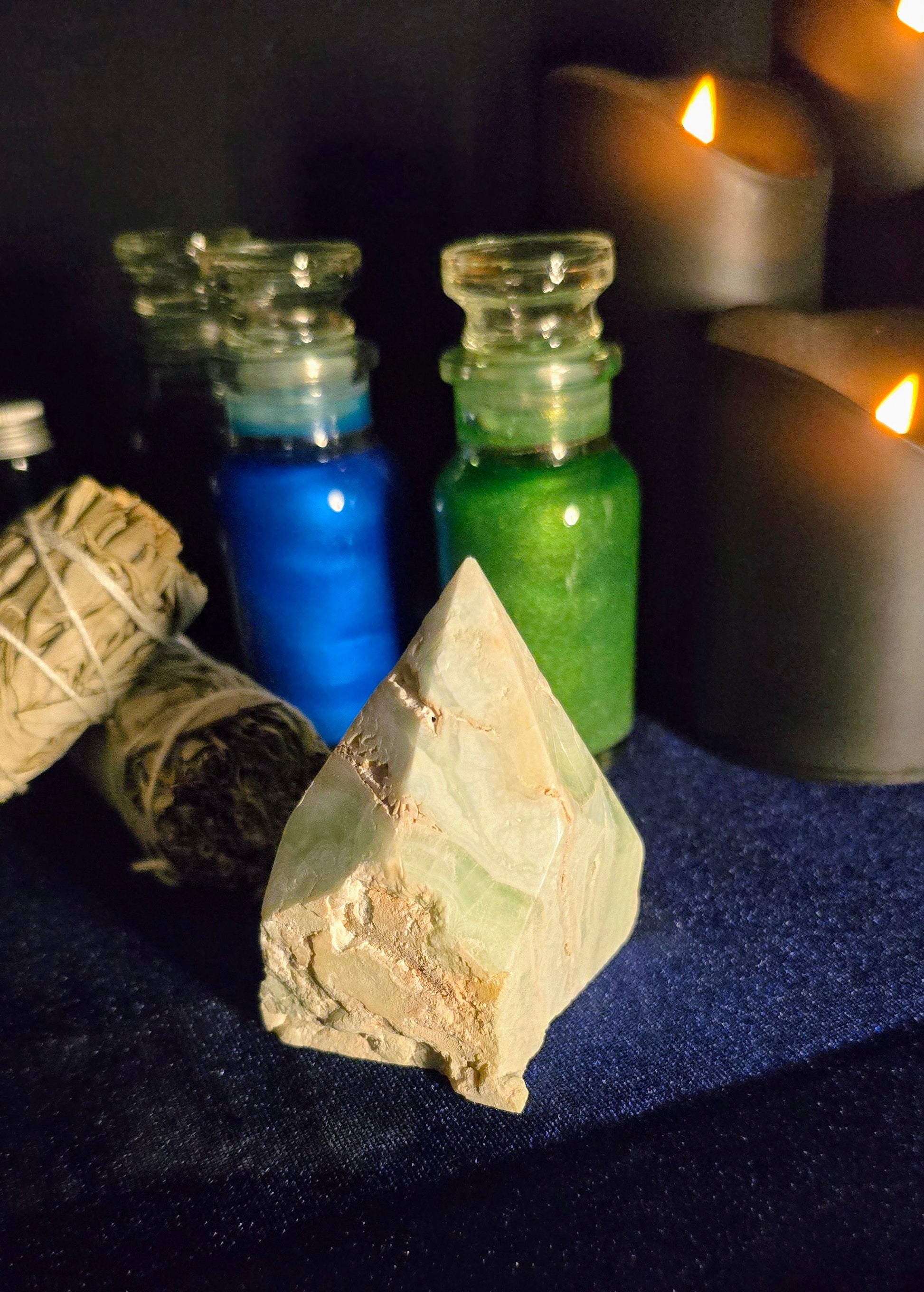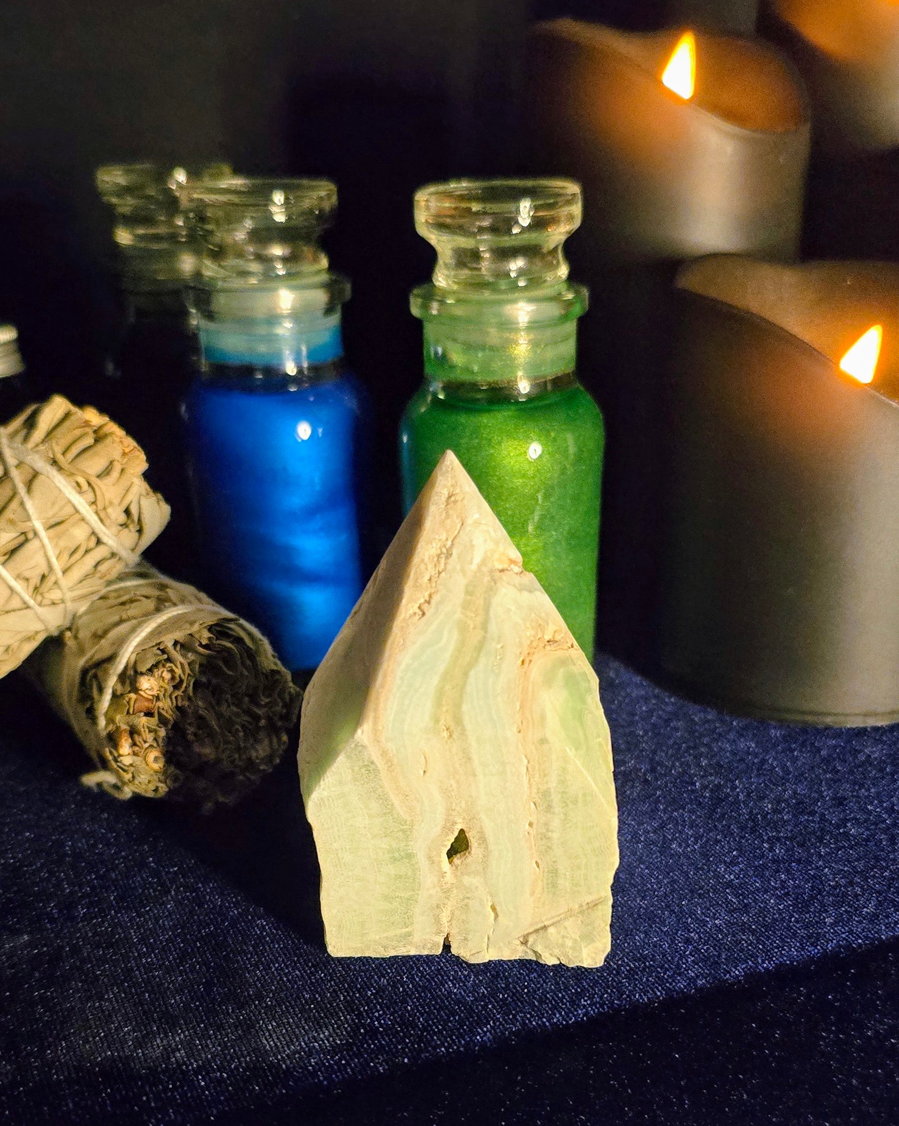 This listing is for one polished point of Caribbean Calcite. Sizes and shapes may vary naturally, inviting the unique essence of each stone into your practice.