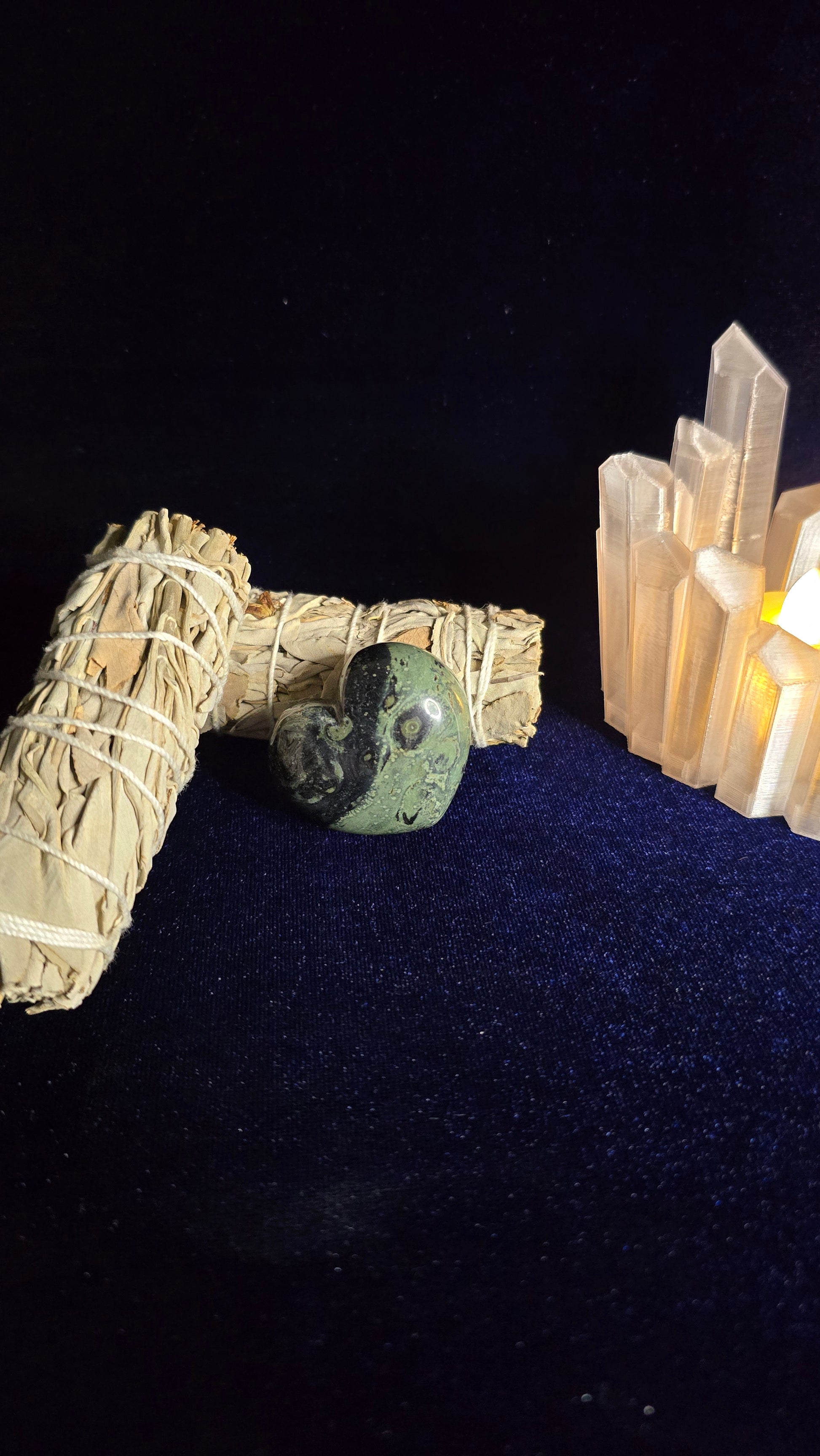 You may just slip into a peaceful place when you hold this heart in your hands. Kambaba Jasper is a stone of peace and tranquility that resonates with the earth energies. This beautiful stone may assist you with protection, is calming, helps you relax, troubled minds and restoring balance to the body and spirit. Sizes, shapes, colors and inclusions varying between each piece. From China.