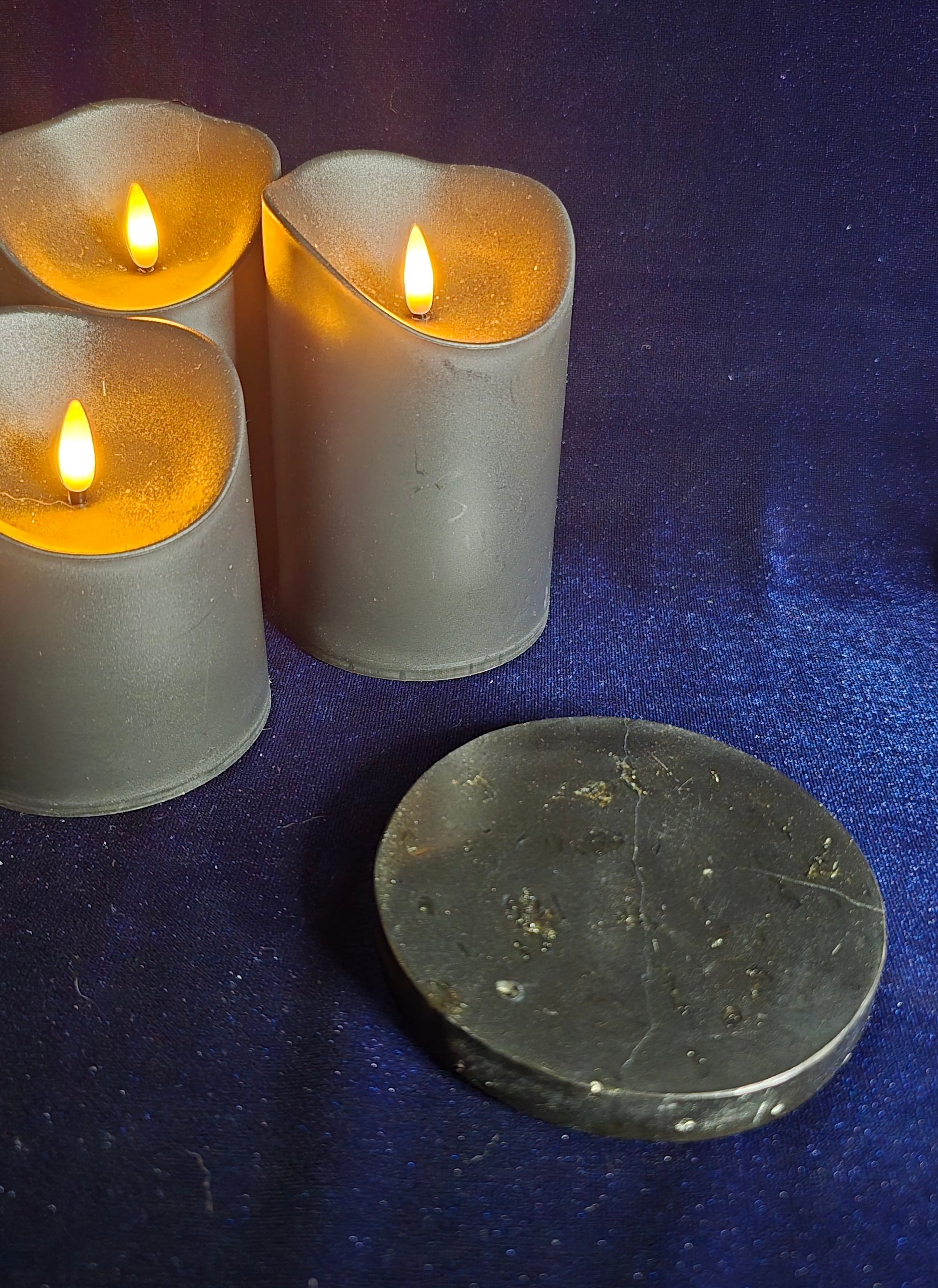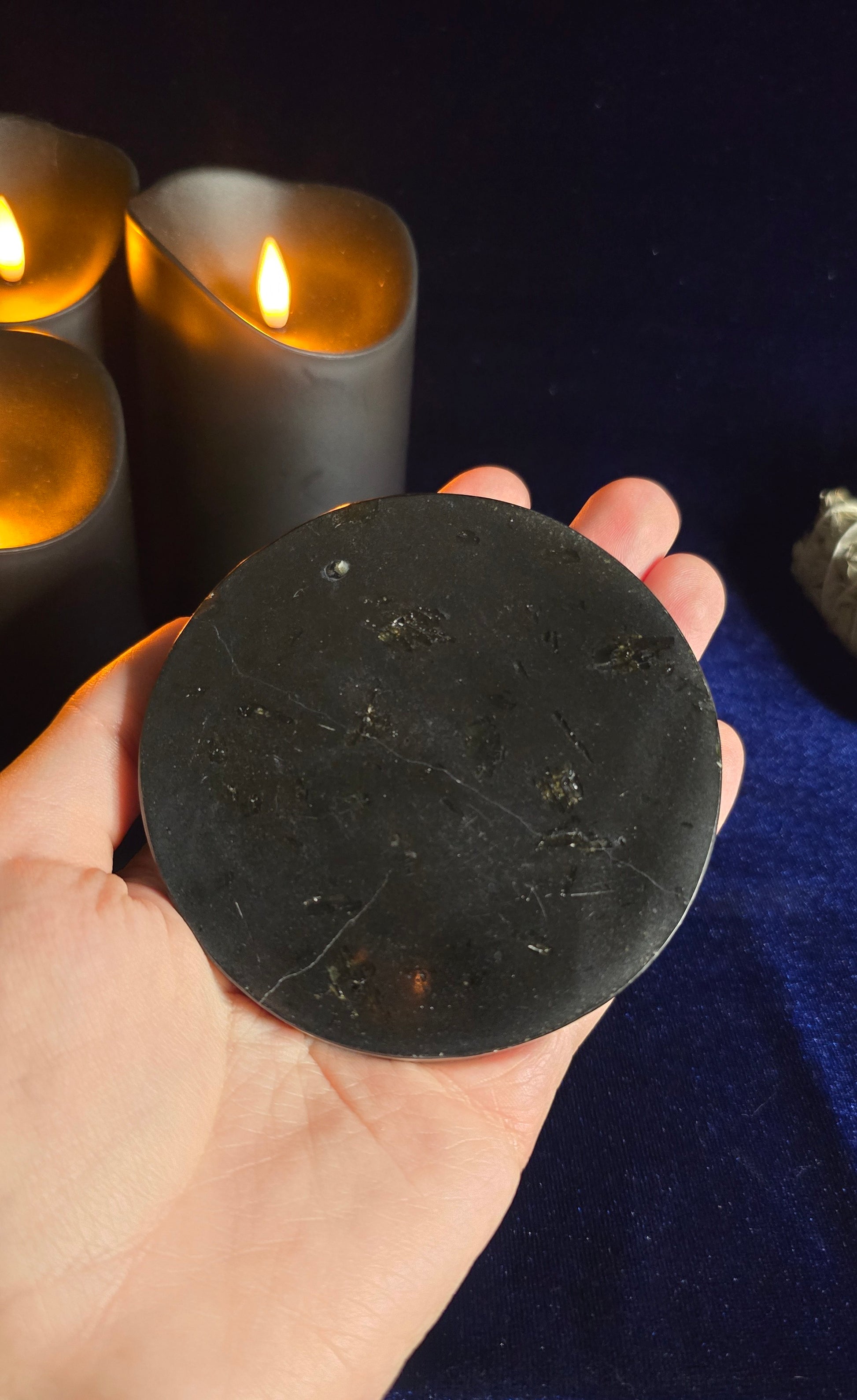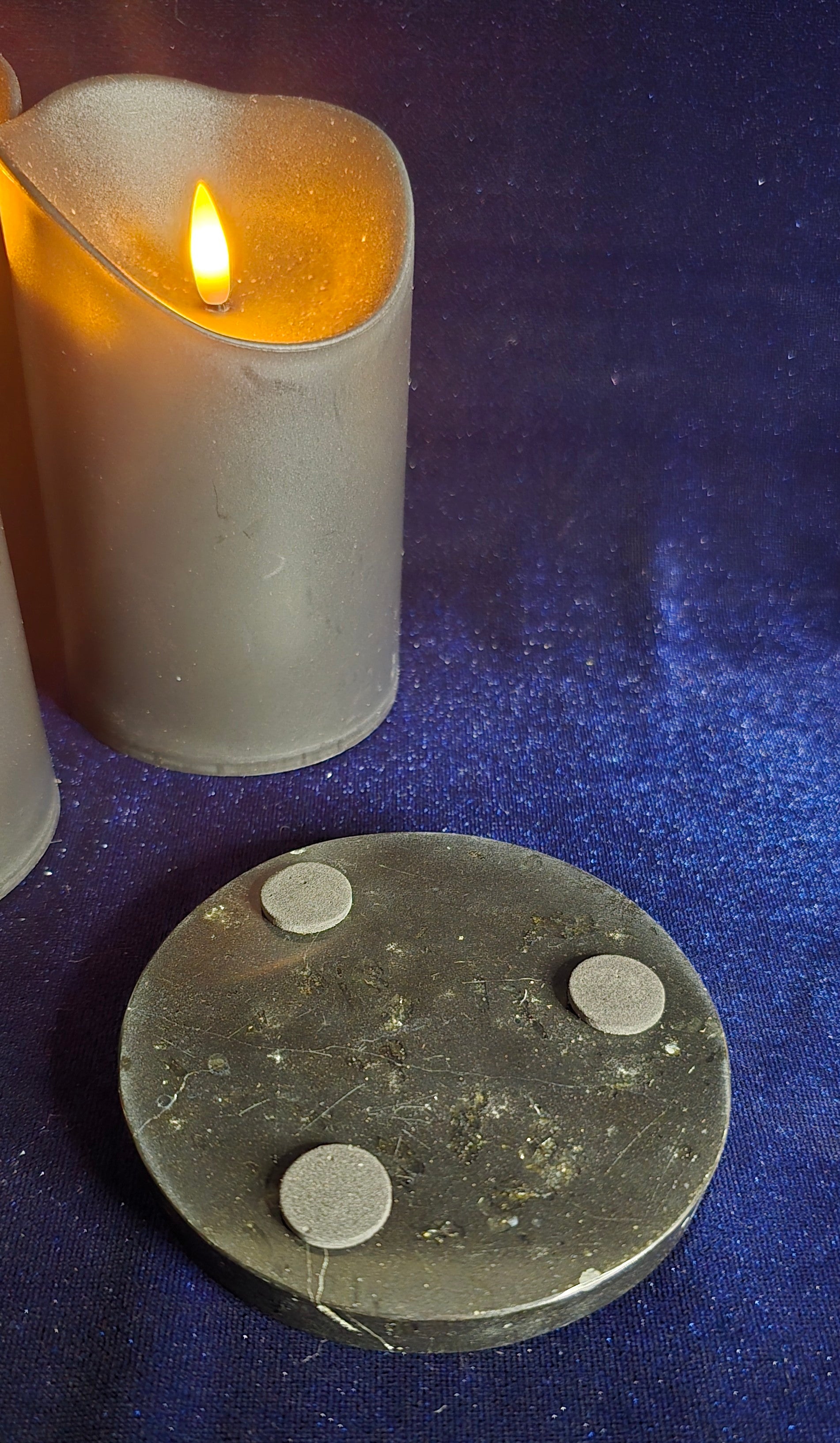 Keep your altar and your rituals protected while having this piece of Black Tourmaline around. May also be used as a coaster for your drinking glasses. Black Tourmaline is an absorber of energy especially negative energy and makes a wonderful grounding tool. 3" tile from India. Sizes, shapes, colors and inclusions may vary in each tile.